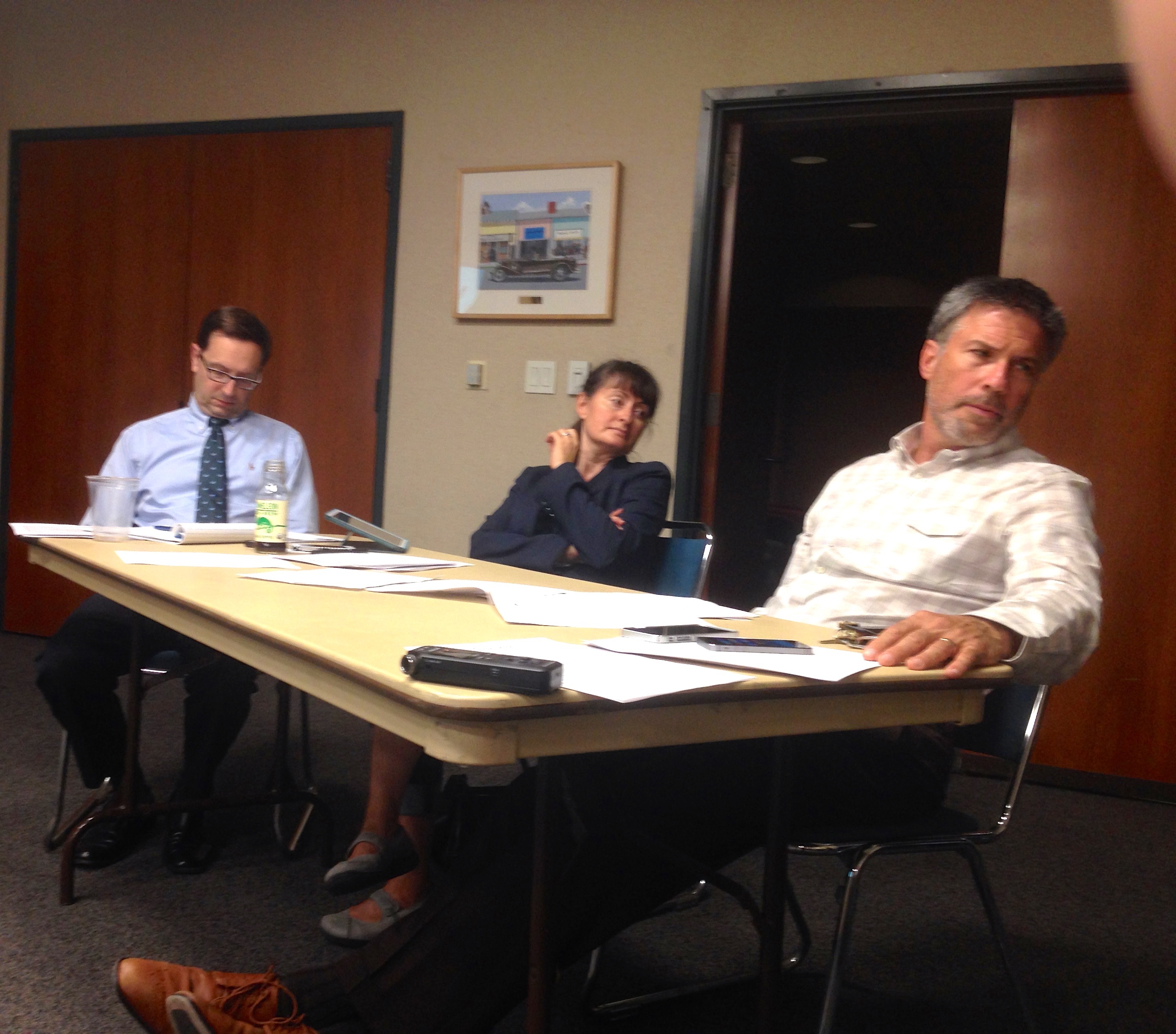 At the Culver City Sustainability Subcommittee meeting – from left to right, Public Works Director Charles Herbertson, Council member Meghan Sahli-Wells and Council member Jeffrey Cooper.